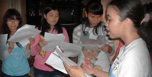 Latihan koor untuk pelayanan Natal Sinaga Desember 2012.
